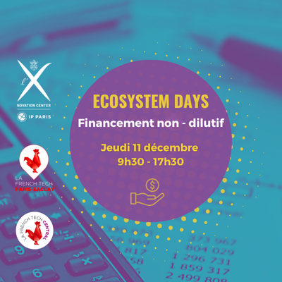 L'incubateur X-UP organise, en partenariat avec la French Tech central et Paris - Saclay, des Ecosystem Days à thème et ouverts à tous les entrepreneurs et porteurs de projets dans l'innovation technologique. Le 11 décembre consacré au financement