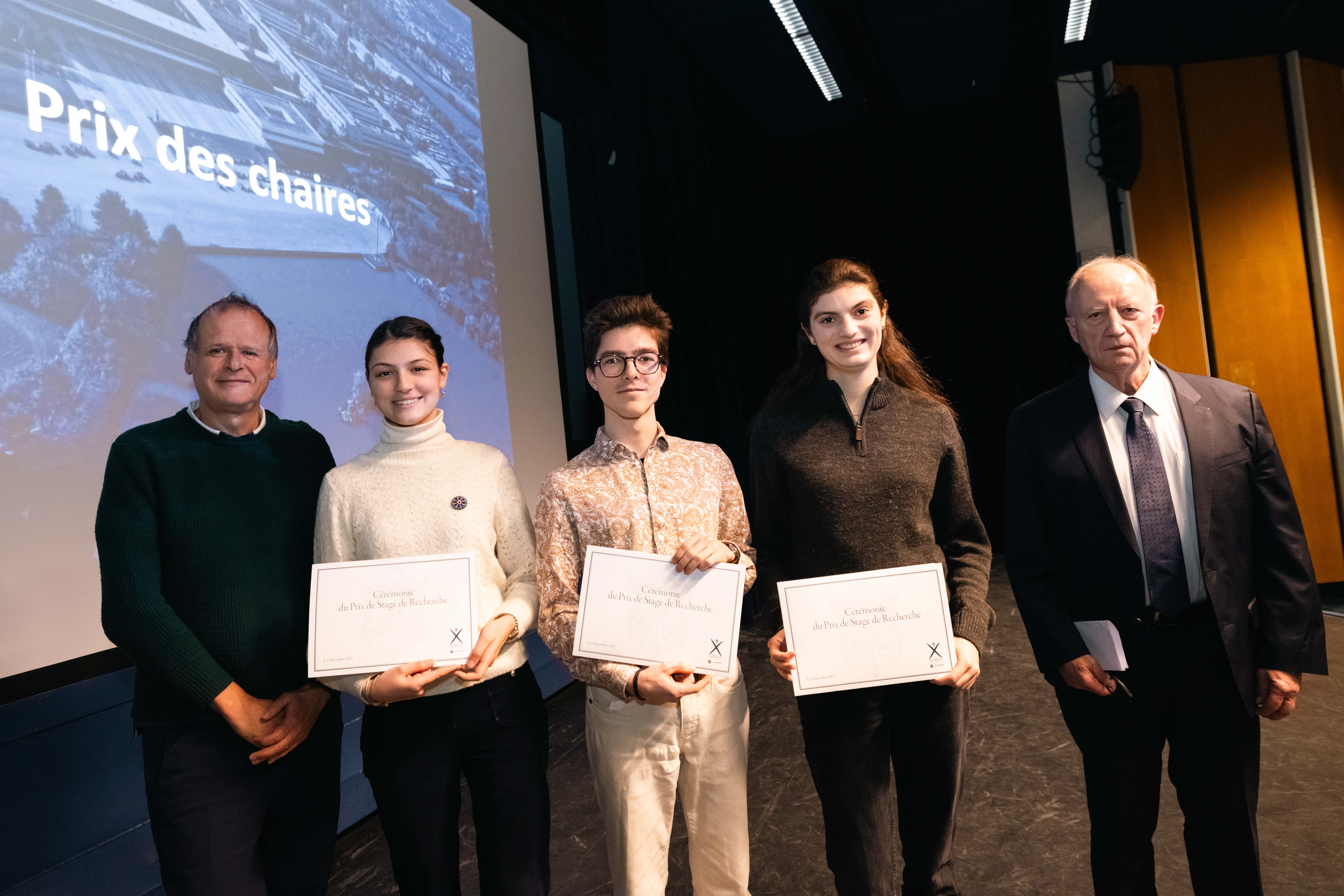 Quatre élèves ingénieurs polytechniciens avaient déjà été primés par l’Académie des Sciences au titre de leur stage de recherche et ont reçu leur prix lors d’une cérémonie qui s’est déroulée le 25 novembre 2025 à l’Académie. Matéo Pirio-Rossignol a été primé en tant que major de la promotion X2022, Marin Debidour en Sciences du vivant et de la matière, Quentin Euler en Sciences physique et Sciences de l’univers, Tahriny Haytham en en Sciences mathématique et économique et Émilie Liaud en Sciences mécaniques et informatiques.