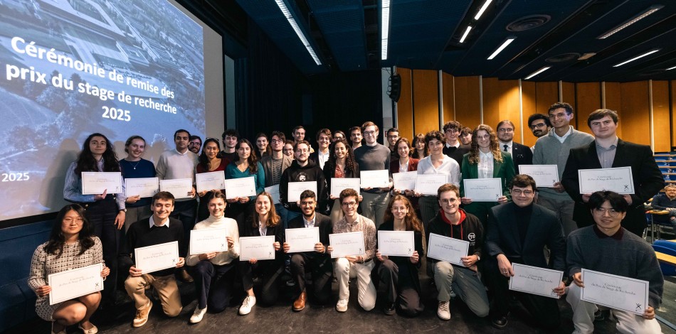 Cinquante Prix de stage de recherche ont été décernés à l’occasion d’une cérémonie qui a permis de mettre en lumière la qualité des travaux réalisés, d’illustrer la diversité des domaines proposés par l’École polytechnique et de souligner l’importance de la recherche fondamentale comme appliquée dans des parcours des élèves et étudiants de l’X.